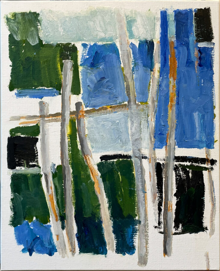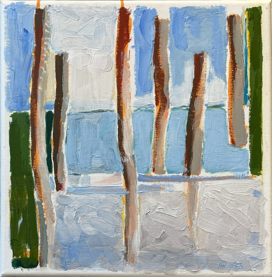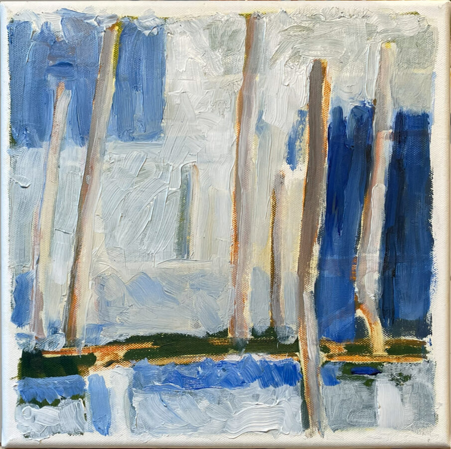 Cette série se présente comme une suite de variations issues d’études précédentes sur les paysages des rivages atlantiques ; que jalonnent au rythme de mes marches à la lisière de l’estran, pieux et pêcheries.